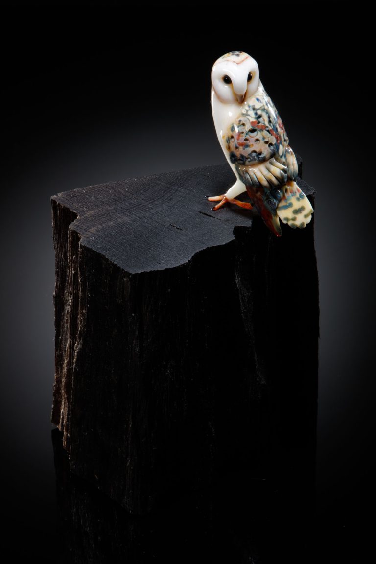 Elizabeth Welch creates captivating glass sculptures where birds, insects, and animals appear suspended in a moment of stillness. Working in borosilicate glass, she uses flameworking techniques to shape each figure, layering colour to achieve lifelike detail. Many are presented within hand-blown or cold-worked glass frameworks, combining technical precision with natural storytelling. These jewel-like pieces are kiln-annealed for strength and finished with flashes of 24ct gold, making each one unique. Exhibited across the UK and sought by collectors, Elizabeth’s work is as technically masterful as it is playful. This winter display offers the chance to own one of her most intricate glass sculptures – an ideal piece for collectors or a memorable festive gift.